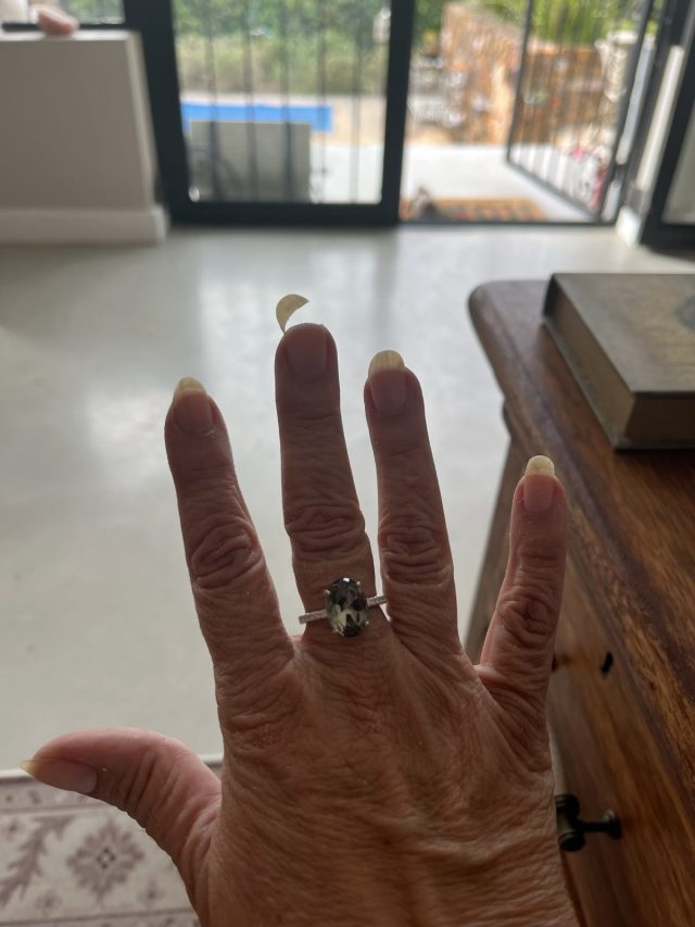 Norm’s flight was Sunday morning. I came downstairs and saw him off and then I spent time in the garden. My long feral nails are not suited for gardening. I chopped all of them off on that hand I now have one long nailed hand and one short nailed hand.