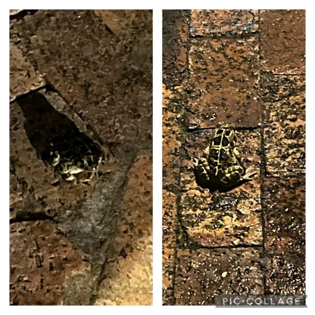 That night I looked outside when I was locking up the windows and doors and Mr Leopard Toad was back. He is so tiny. I added the new pic to the old one so you can view him from front and back! I am kind like that.